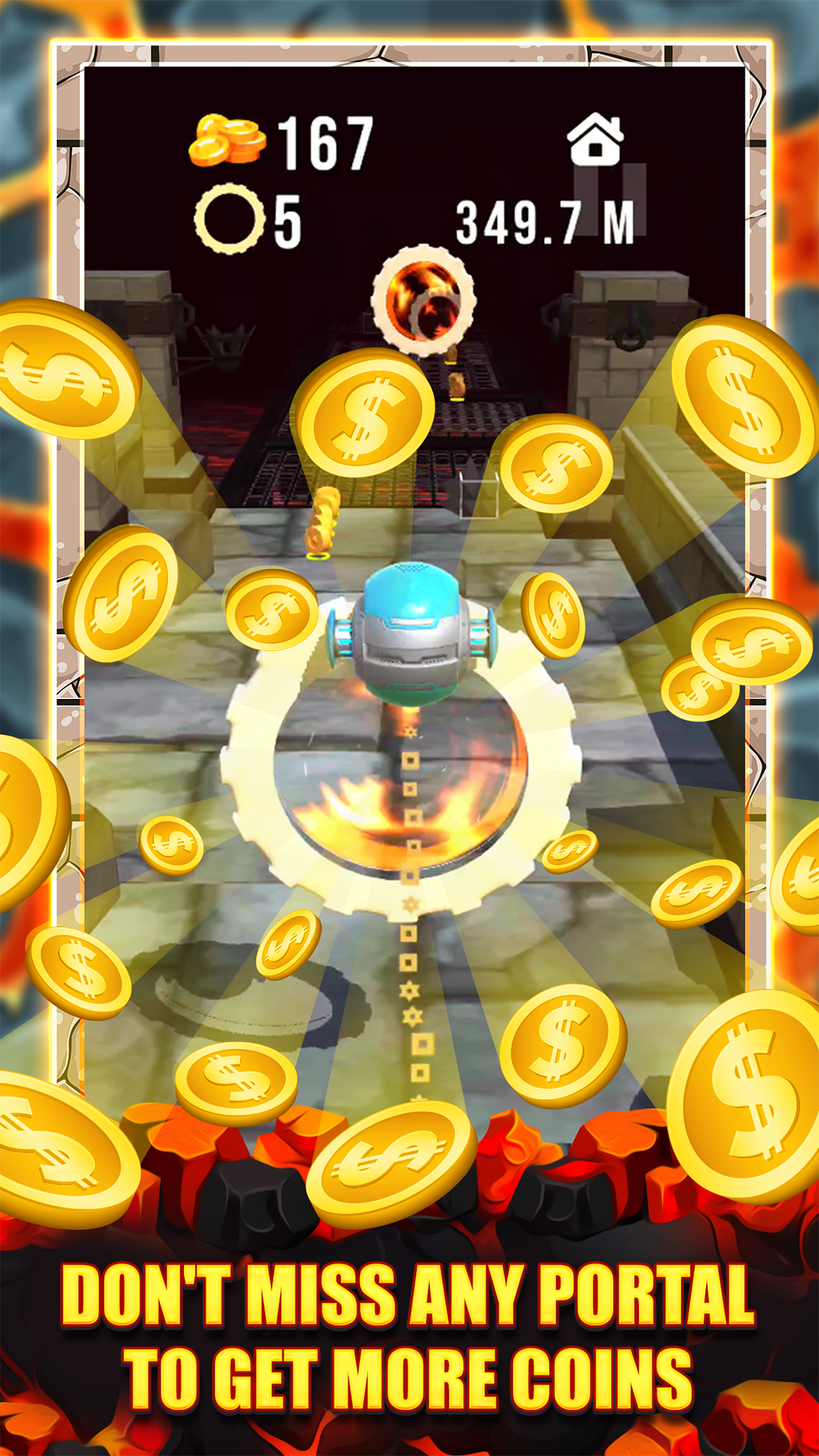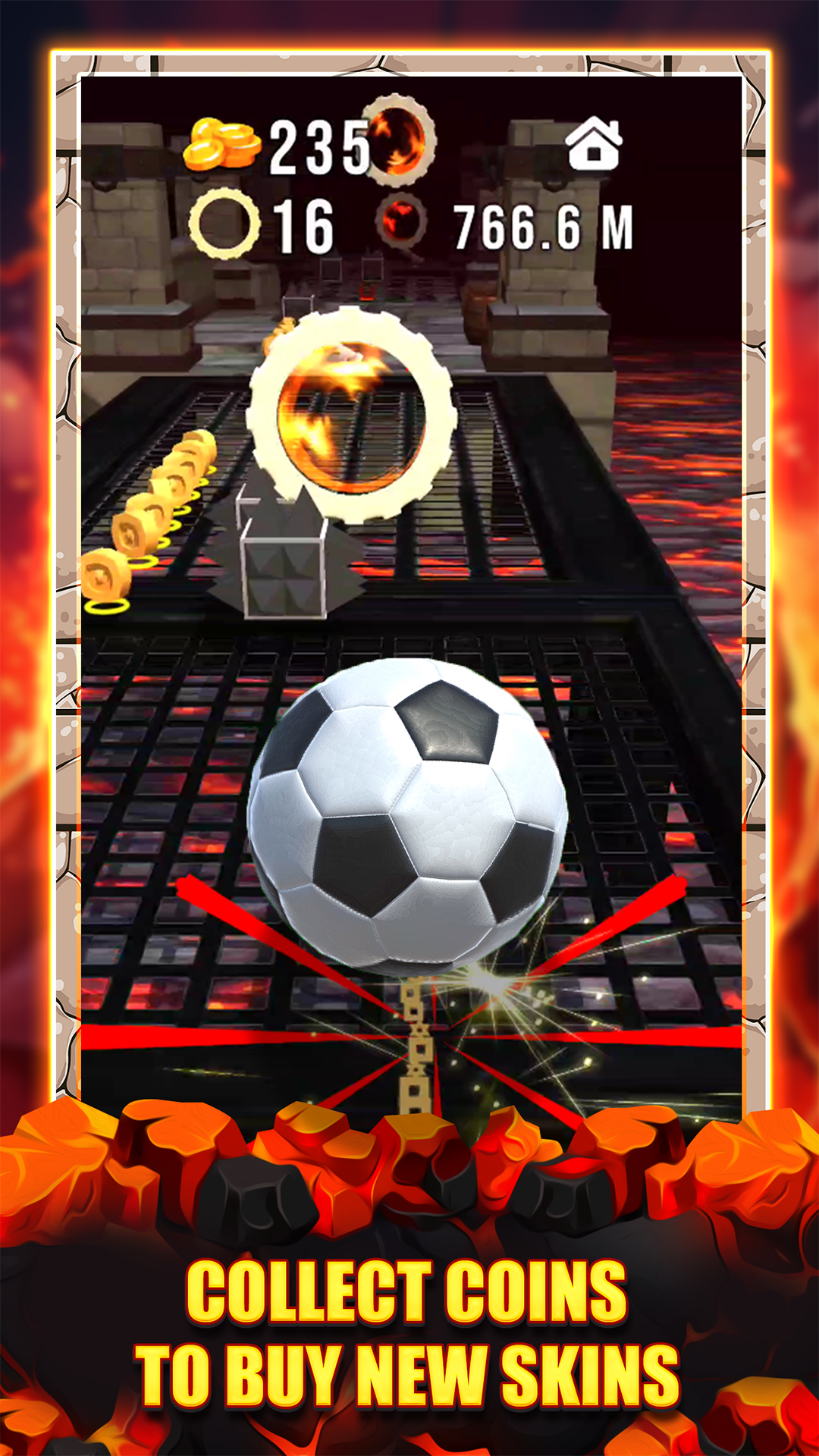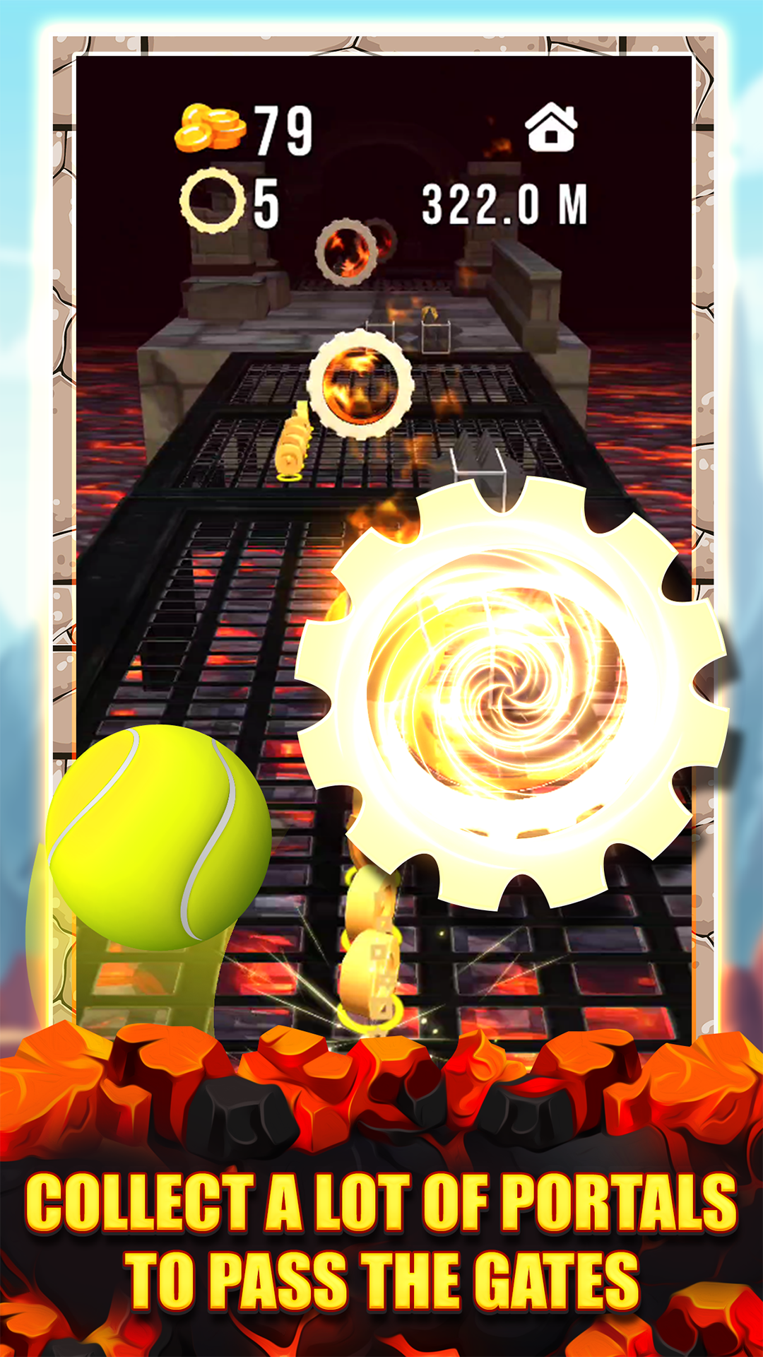 لعبة عداء لا نهائي حيث يتحكم اللاعبون بكرة نار مرتدة لجمع العملات، البوابات، وتعزيزات القوة مع تجنب العوائق.